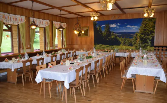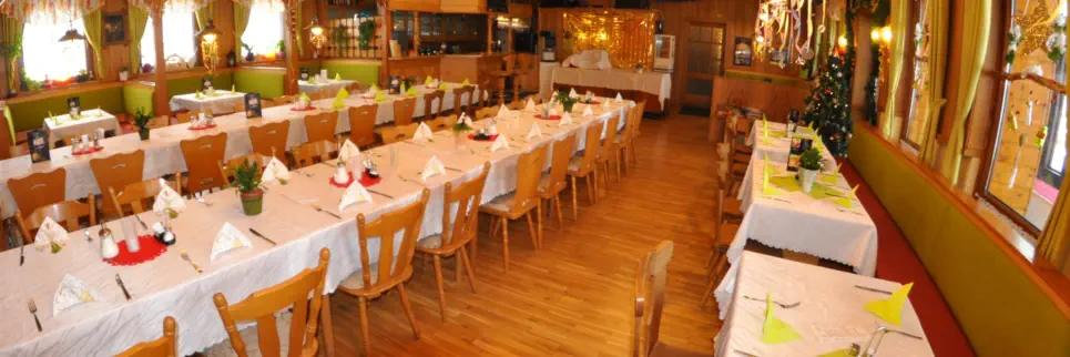 gemütlicher, rustikal eingerichteter Gastraum bietet Ihnen 100 Plätze.